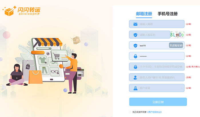 • 操作路径 :打开闪闪转运官网→点击注册→填写手机号/邮箱、设置密码,完成实名认证(需完善姓名、身份证号等个人信息)。