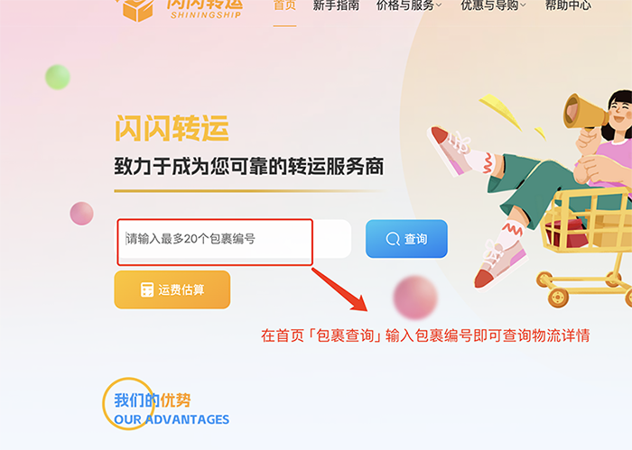 • 追踪物流 :支付后,系统会生成包裹编号,在首页输入,可在闪闪转运官网平台实时追踪。
