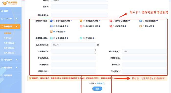 Step 3:包裹预报+增值服务,让转运更省心