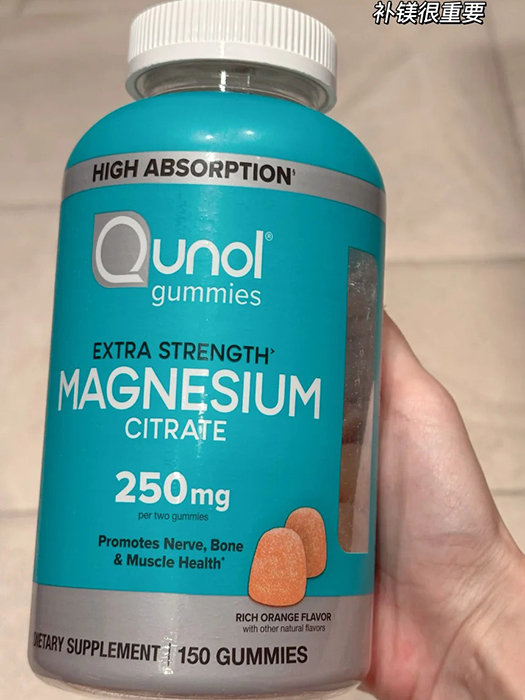 9. Qunol 柠檬酸镁软糖(高浓度)功效:每两粒软糖含250毫克柠檬酸镁,促进神经、骨骼和肌肉健康。